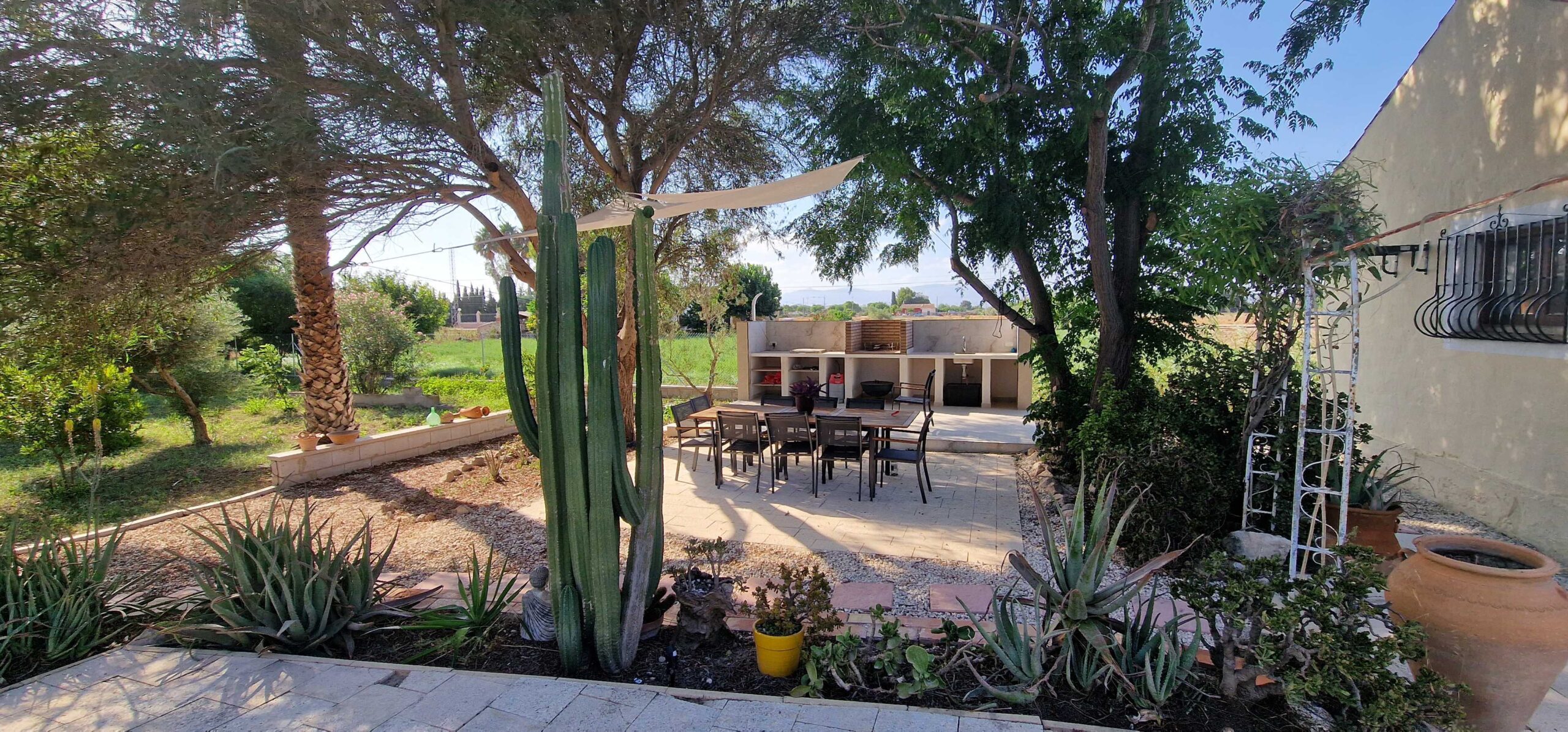 Outdoor barbeque in a natural shade